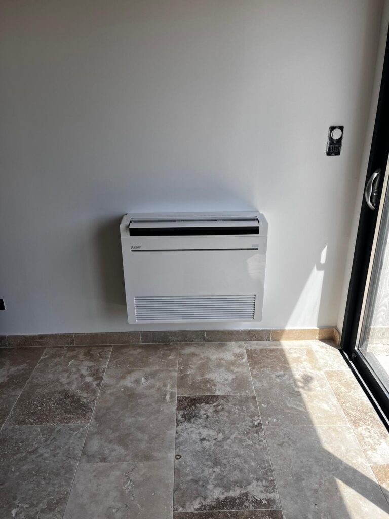Nos techniciens ont posé un système multisplit Mitsubishi Electric sur ce chantier de rénovation : plusieurs unités intérieures, dont une console basse, pour un confort sur-mesure dans chaque pièce